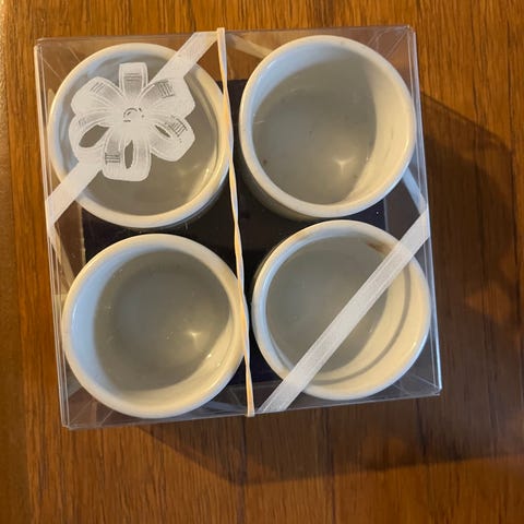 Tuikkulyhtyjä 4 kpl, kaunis lila sävy, lasia, hyväkuntoiset, kahden pohjassa näkyy hieman kulumaa (mutta ne eivät näy mihinkään), led tai tavallinen tuikku sopii.