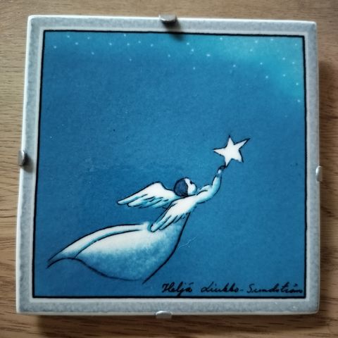 Keraaminen laatta taulu Heljä Liukko-Sunström koko 12x12cm. Takana ripustus koukku.