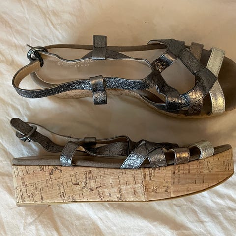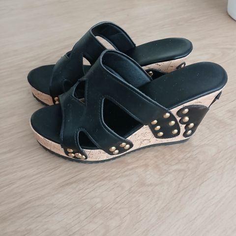 Uudet sandaalit kiilakorolla. Korko 5,5 cm. Koko 40. Sisämitta 26 cm. Säädettävä nilkkahihna metallisoljella.