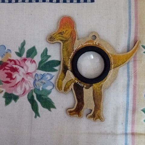 Muovinen stegosaurus, joka on n. 28 cm pitkä ja n. 17 cm korkea. Siitä puuttuu paristojen luukku. Paristojen kanssa silmiin syttyy valo ja se pitää ääntä, mutta ei kävele. Jalkoja voi kyllä liikutella. Se voi hakea tai voin lähettää.