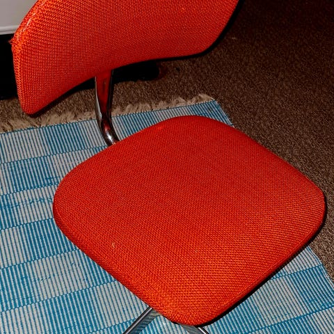 70-luvun koululaistuoli. Korkeus säädettävä. Musta keinonahka.