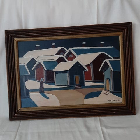 Nastolan taideyhdistyksen jäsenen Pekka Haalin kankaalle maalaama öljyväriteos "Kesäinen joki". Signeeraus "P. Haali - 99". Erittäin hyväkuntoinen kauniita kehyksiä myöten. Taulun takana on kehykseen painettu aitoustodistus teoksen tarkempien tietojen kera.