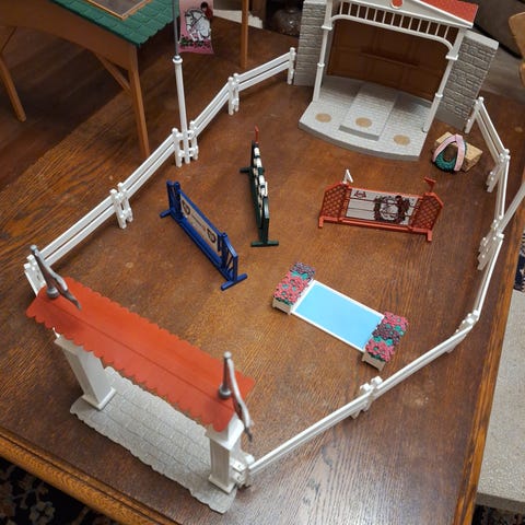 Myydään kuvanmukainen Schleich- kisasetti. Kuuluu kisakatos, 15kpl aidanpalaa, 4kpl lipputankoa, portti lipuilla, pokaali, palkintokranssi sekä penkki 😊