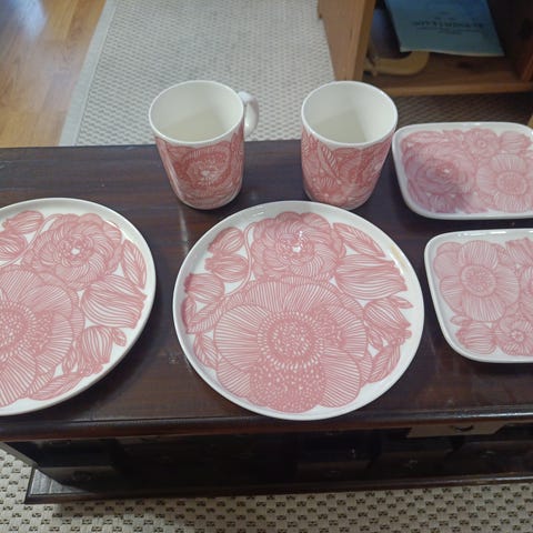 Marimekon pieni korvallinen kahden desin kahvikuppi ja leipälautanen.