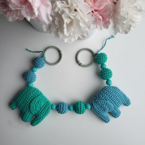 Myydään käsityönä tehtyjä, uusia, virkattuja vaunuleluja. Kaikki käytetyt tarvikkeet ovat lapsille turvallisia. Silikonihelmet ovat valmistettu elintarvikelaatuisesta silikonista, joten ne ovat turvallisia lapsen maisteltaviksi. Helmet voi puhdistaa vedellä ja miedolla saippualla. Langat ovat OEKO-TEX sertifioituja. Kaikki tuotteet tehdään asiakkaan toiveiden mukaan ja värivaihtoehtoja on paljon. Myös paljon tuotteita heti valmiina! Norsujen sisälle on myös mahdollista saada helistin tai rapisevaa paperia.