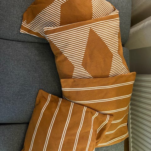 Neljä hyväkuntoista ja siistiä koristetyynyä yhteishintaan.