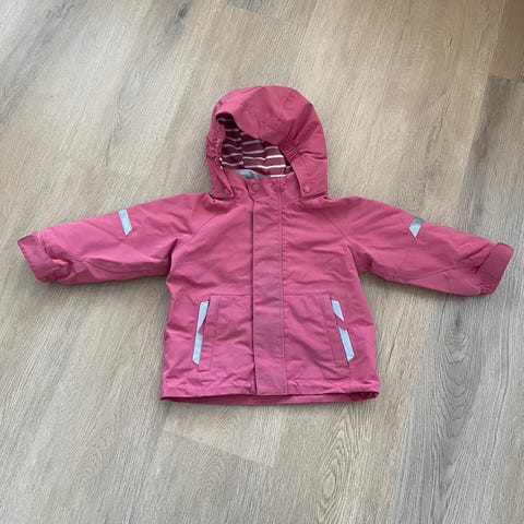 Upea Isbjörn of Sweden -merkin vaaleanpunainen STORM hardshell jacket (ovh 160e). Jäi meillä vähälle käytölle. Hihansuissa ihan kevyttä tummentumaa (viimeinen kuva), muuten täysin moitteettomassa kunnossa