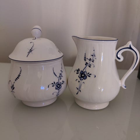 Myynnissä uudet Villeroy & Bosch, Farmhouse Touch Blueflowers, sokerikko ja kermakko