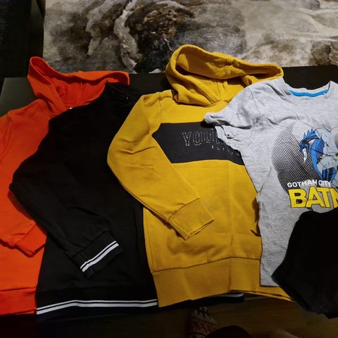 Kaksi vetoketjuhupparia (Lager 157), molemmat kokoa 130cm. Vaaleanpunaisen taskussa ja hihansuissa haaleat tahrat (vika kuva), muuten hyväkuntoinen. Harmaa hyväkuntoinen.