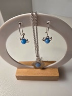 Myydään uusi uniikki käsityönä tehty hopeinen akvamariini kukka-korusetti. Settiin kuluu kukkariipus akvamariinillä ja hopeisella ketjulla + korvakorut. Kaulaketju ja riipus ovat hopeaa 925, ketjun pituus 46 cm. Riipus on tehty vanhasta vintage korvakorusta. Pinta on hiottu "eläväksi" ja mattaksi. Riipus on kukkamuotoinen, keskellä iso akvamariinihelmi. Riipuksen halkaisija on n. 2 cm. Uniikki ja ainutlaatuinen koru. Toista ei tällästä varmaan ole. Vintage. Korvakorut myös tehty vanhoista vintage hopeisista korvakoruista ja lisätty akavamiiri helmiä Korvakorun kokonaispituus on n. 2.5 cm. Upea kokonaisuus. Setin ostajalle upea lahkarasia ja kiitos-kortti tulevat mukaan. Saatavilla myös erikseen. Katso myös muita minun tekemäni käsityö tuotteita.