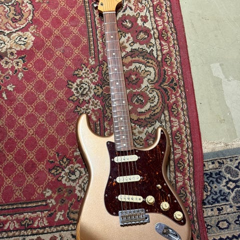 Tästä uudenveroinen vähän käytetty traditional Fender Stratocaster, kaikki osat alkuperäiset, vuosimalli 2023. Mukaan Fender kovalaukku (kuvassa oleva), tremolokampi ja sertit.
