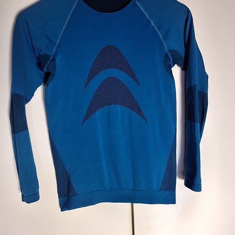 Myydään uusi käyttämätön tekninen kerrastopaita (laput irroitettu) kokoa 140 cm. Materiaali 100% polyesteriä. Väri tummansininen / kuviollinen.