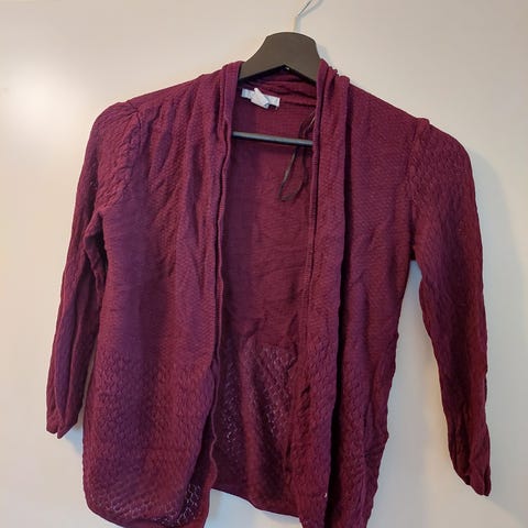 Kuvassa oleva lila bolero, jossa edestä jää taakse, siis lähinnä on hihat. Nouto tai postitus. Kulkeutuu myös Turkuun omien menojen mukaan. Väri lila ei noin sininen kuin kuvissa.