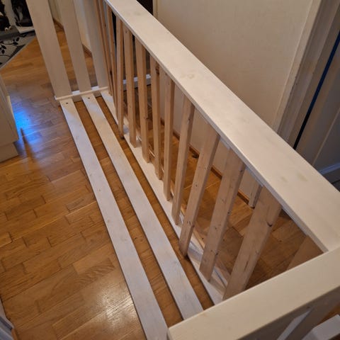 Käytön jälkiä löytyy ja ollut käytössä paljon. Patjaa ei tule mukana. Pystyy säätämään pituutta. Nouto Liedosta.