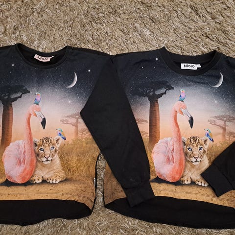 Molo dinosaurusaiheiset t-paidat koko 128. Sinisen kokomerkintä on 122, mutta on samaa kokoluokkaa kuin tuo kuviollinen, jossa kokomerkintä 128. Tummansininen ei tainnut ehtiä kertaakaan päälle, eikä kuviollinenkaan ollut kuin paristi. Oikein hyväkuntoisia toisellekin.