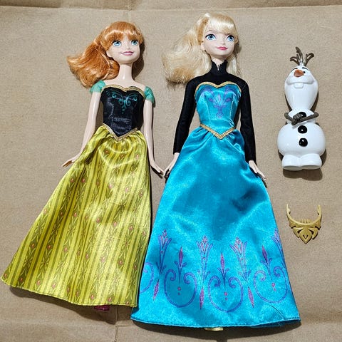 Myydään hyvässä kunnossa Frozen nuket. Elsan ja Annan isä maksaa 20€. Anna ja Elsat maksavat 10€, 15€/ kpl. Pari nukke maksaa 5€, joilla ei ole vaatteet! Osa nukeista laulaa myös.