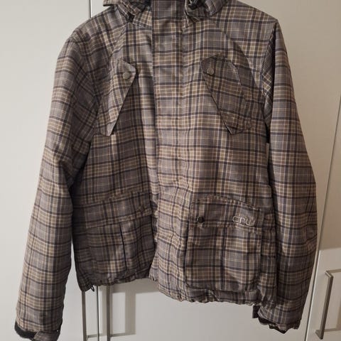 Vihreän kirjava CRW -merkkinen karvatakki.