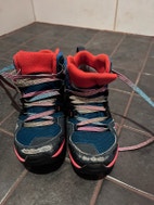 Hyväkuntoiset nilkkavartiset lenkkarit. Molempien kenkien kärjissä pientä kulumaa, mutta ei haittaa menoa. Siistissä kunnossa ovat.