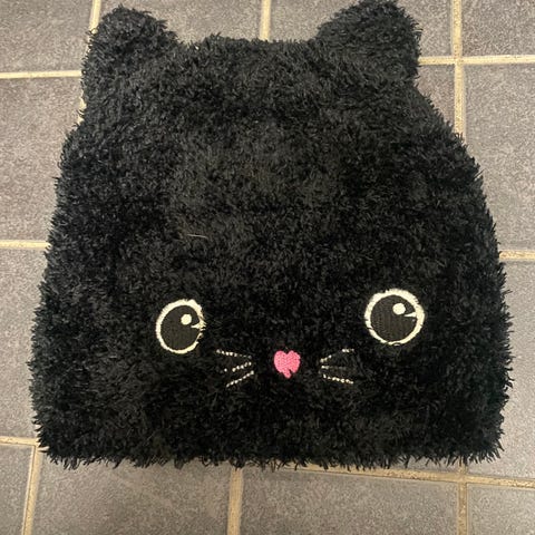 Ompelijan tekemä suloinen kissa lippapipo tupsulla. Pipon alareunan leveys n. 26 cm ja korkeus n. 21 cm.