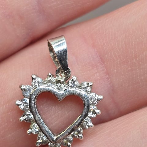 Hopeat osat ovat aitoa hopeaa, niistä löytyy hopean pitoisuusleima 925. Sydämen materiaalista ei ole tietoa. Vähän käytetty, ei selkeitä käytönjälkiä havaittavissa.