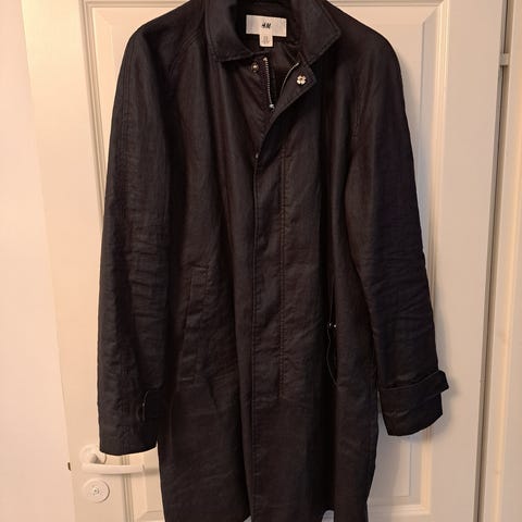 Ohut vuori, yksi sisätasku, edessä yht. 4 taskua, takana helmassa lyhyt halkio. Koko 54
