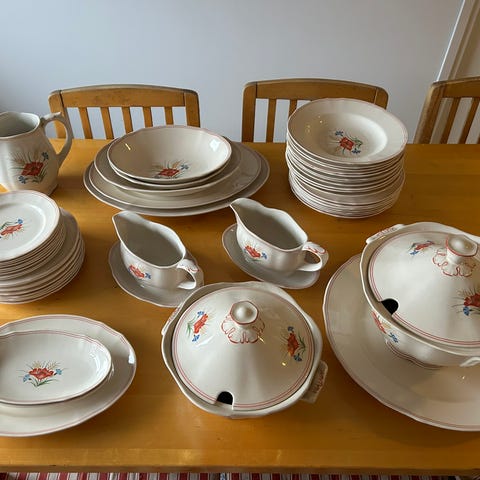 Arabian harvinaisemmat alkuperäisen tuotannon Eeva sarjan astioita, BK-malli, Birger Kaipiainen. Sama malli kuin esim. Paratiisi, Sunnuntai, Apila ja Runo.