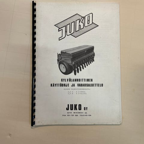 Myydään Juko 17LV kylvökone jyräpyörästöllä 70-luvulta. Ollut käyttämättä ladossa 80-luvulta.