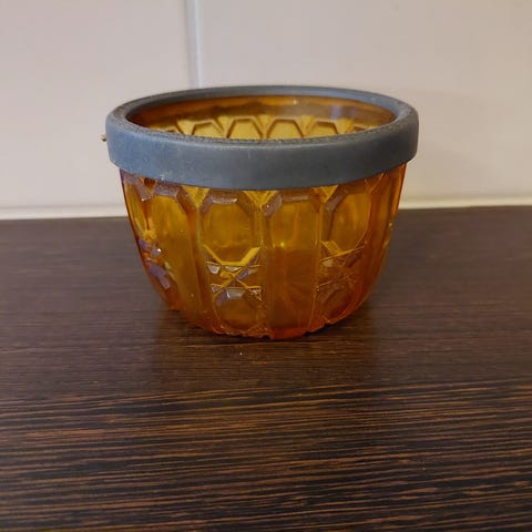 Vanhat kauniit sokerikko ja kermakko kuparin väriset ulkopuolelta