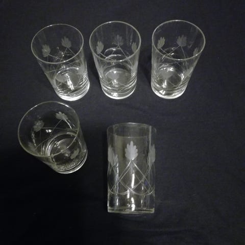 Kauniit korkeat juomalasit kukkakuvioinnilla. 8 kpl / 10e. Nouto tai toridiili.