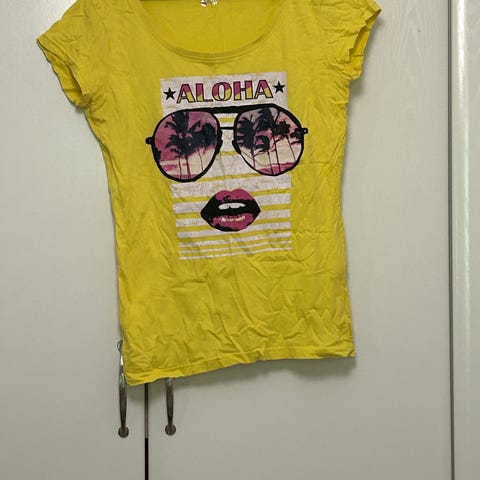 Keltainen lyhythihainen kauluspaita, pitkähkö malli, koko L (pimkie). Nouto mellunmäestä