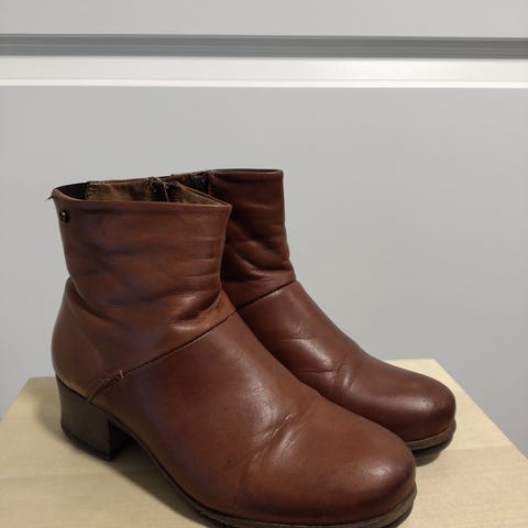 Myydään hyvässä kunnossa naisten korolliset,nahkaiset nilkkurit. Koko 38. Sävy ruskea. Merkki andiamo. Tosi mukavat jalassa,mutts jääneet itselle hyvin vähälle käytölle. Kengissä nilkka korkuinen varsi, sopii hyvin kevätkeleille.
