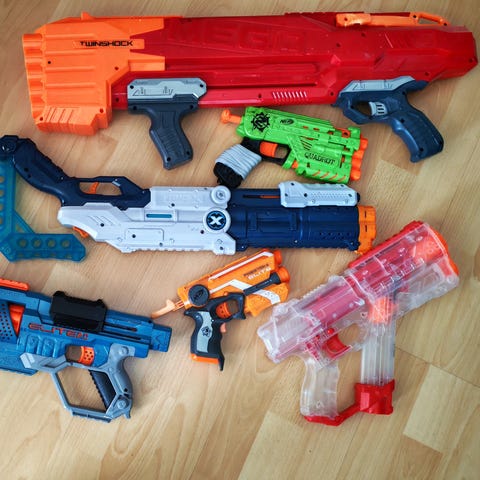 Uudenveroinen paristotoiminen Nerf ase. Kaikki paketin sisältö tallella ja mukaan tulee kasa normaaleja nerf ammuksia, 2kpl isoja nerf ammuksia ja yksi lipas.