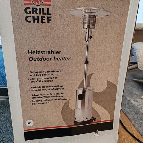Pöytämallin terassilämmitin, kaasulla toimiva.