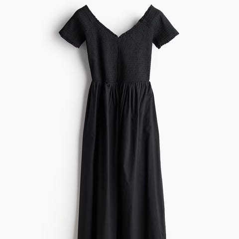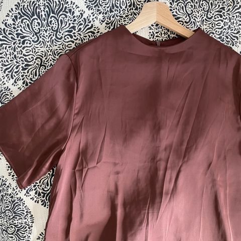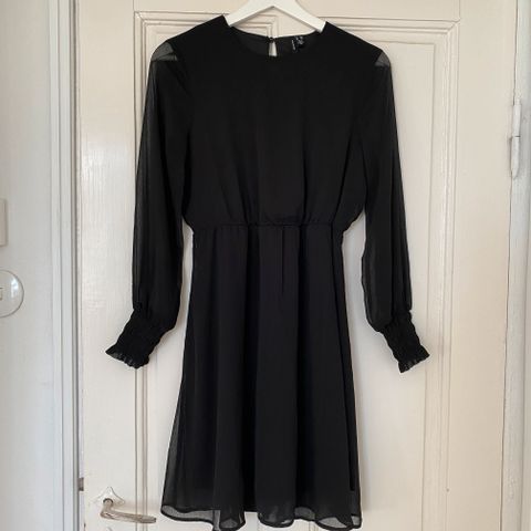 Kaunis mekko, hihansuissa kultaiset napit, niskassa rusetti.