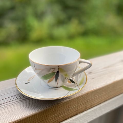 Myynnissä laatukas harvinainen vintage LFZ kahvisetti 6-delle. Tuotettu 80 luvulla, posliini, käsimaalaus.