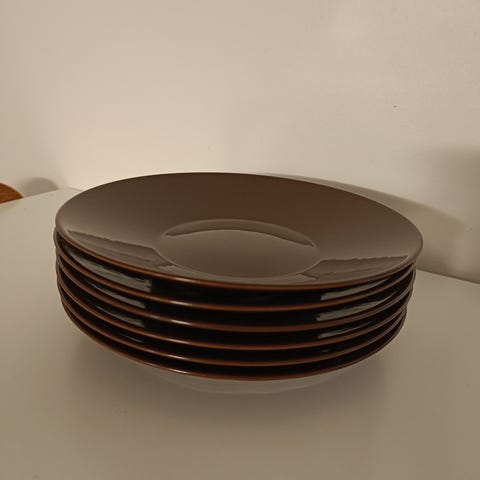 2 kpl ruskeita KoKo lautasia. Halkaisija 28cm. Näitä on vähemmän käytetty, mutta pinnassa saattaa olla pientä naarmua.