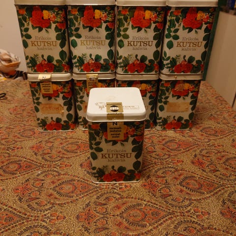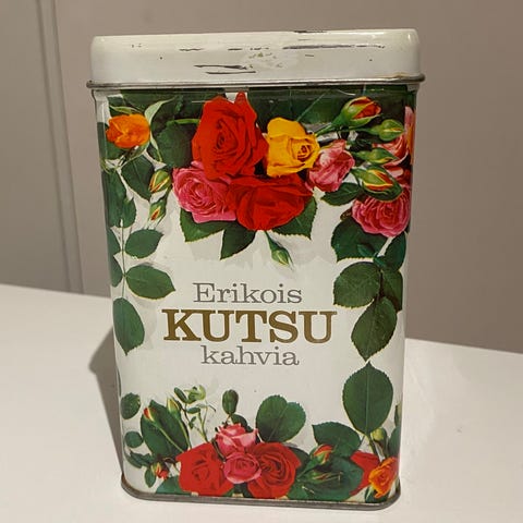 Tukon vanha peltinen erkois kutsu kahvipurkki. Ihan ok kunnossa. Vain nouto ja maksu käteisellä noudettaessa