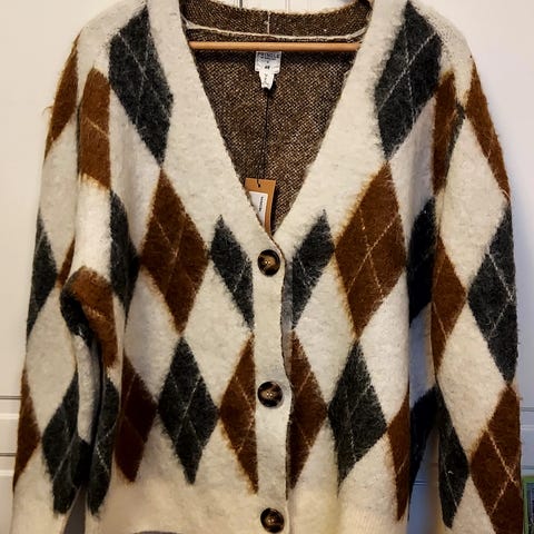 Myydään pari kertaa pidetty neuletakki. Alkuperäinen hinta noin 50 e (Pia Olsbo).