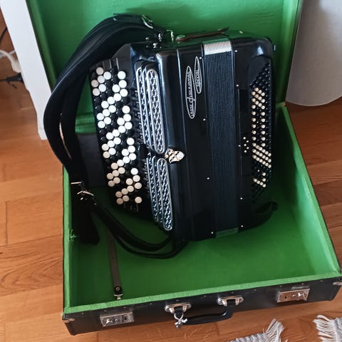 Juuri kattavasta perushuollosta tullut erittäin hyväkuntoinen harmonikka, johon vaihdettu huollon yhteydessä uudet olkaremmit sekä bassoremmi. Myydään meille tarpeettomana. Mukaan tulee hyväkuntoinen reppu säilytystä ja kuljetusta varten.