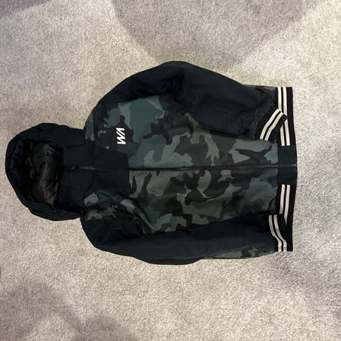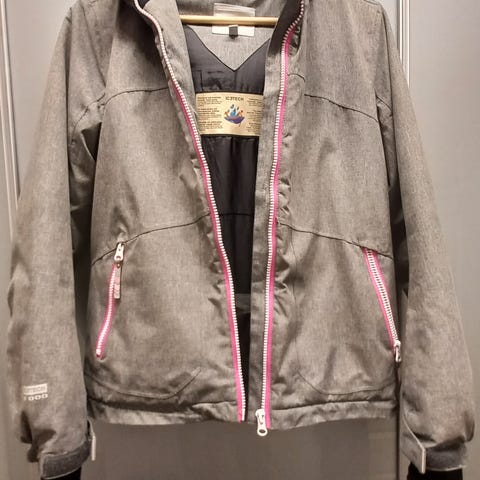 Käytetty yleisilmeeltään siisti ohuempi laskettelutakki. Toisessa hihansuussa reikiä. Lumilukot, hihassa korttitasku.