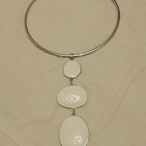 Emp:ltä ostettu ja kerran käytetty. Päällysmateriaali tinaa. Ketjun pituus: noin 52 cm. Riipuksen mitat: noin 4 x 3.2 cm