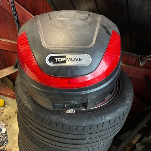 Hyvässä kunnossa oleva moottoripyörän/Skootterin takaboksi. Ollut vähällä käytöllä.Täysin ehjä. Kiinnitystelinne sisältyy hintaa.Boksissa lukitus telineeseen/luukkuun.Löytyy 2 avainta. Hinta 40€.