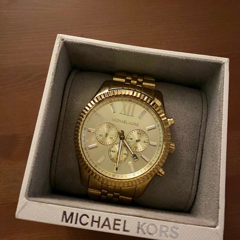 Michael Korsin vaaleanpunainen rannekello, uusi ja käyttämätön. Alkuperäisessä pakkauksessa. Kellotaulun läpimitta 3 cm, ranneke ilman kellotaulua mitattuna 18,5 com, kokonaan mitattuna 24 cm. Ranneke lynettävissä.
