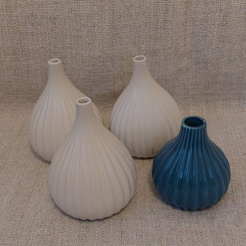 Maljakkoja ja kulho valkoista lasia, hinnat tekstissä
