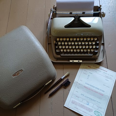 Kuvassa oleva vintage kirjoituskone.