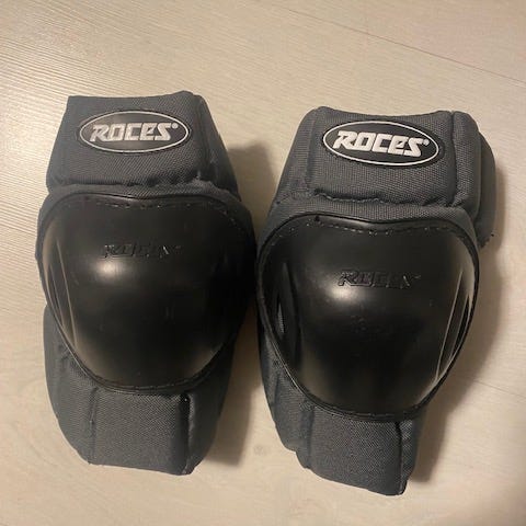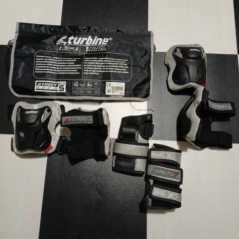 Lapselle ostettu, mutta käyttämättä jäänyt polvi- ja rannesuojasetti. Kokomerkintä M, mutta meillä ostettu 7 vuotiaalle lapselle (koko ollut sopiva).