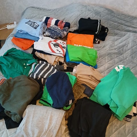 Myydään kassillinen poikien vaatteita, koko noin 150 cm. Huppareita, College, icepeakhousut, farkkuja, t-paitoja, bombertakki, nahkatakki. Ei postitusta.