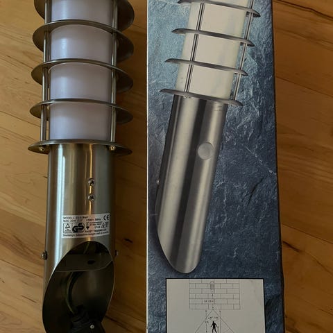 Hyvä ja jämäkkä seinävalaisin ulkokäyttöön, kaksi led-valonlähdettä GU10 2 x 2,5W ylös ja alas. Valo 4000 kelvin. Materiaali ruostumaton teräs. IP44. Valonlähteet sisältyvät pakkaukseen.