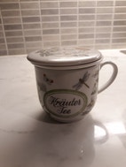 Uusi Saksalainen (Kräuter) yrttiteen haudutukseen sopiva muki, tai tavalliselle teelle, mukana siivilä, kansi,
