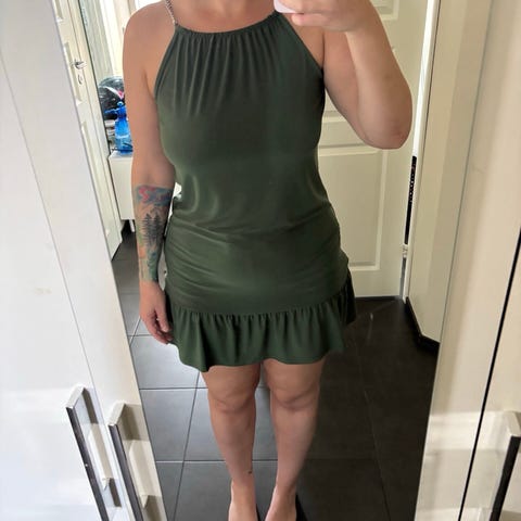 Myydään Ze-Ze-merkkinen vihreäsävyinen kesämekko. Uusi, vain kerran päällä ollut, jonka jälkeen pesty koneessa. Ihanan pehmeää kangasta (95% polyesteriä, 5% elastaania). Koko S, mutta taipuu venyvyytensä ansiosta hyvin myös M/L-koille. Ulottuu polviin asti 164-senttisellä